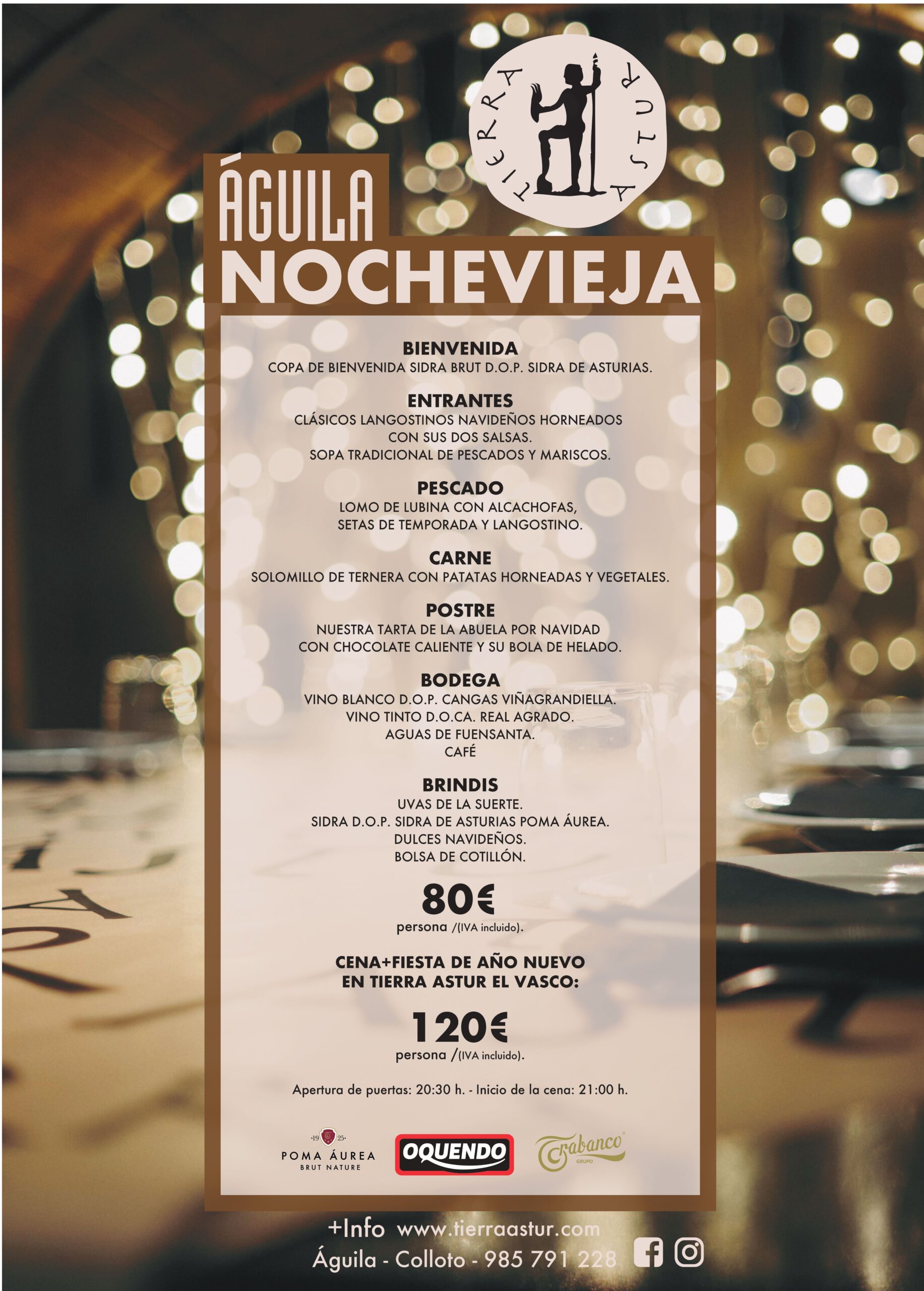 La Cena de Nochevieja siempre es un momento especial, es por eso que en Tierra Astur Águila, en Colloto, Asturias, hemos preparado una velada para que disfrutes al máximo éste 31 de diciembre.