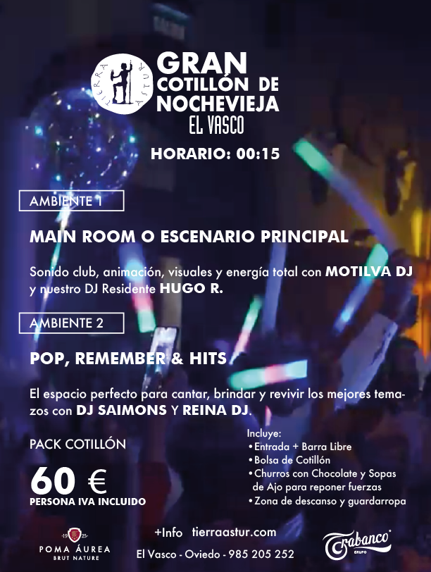 Y si eres de los que les gusta alargar la noche y dar la bienvenida al nuevo año por todo lo alto, añade a tu entrada nuestra fiesta de Tierra Astur el Vasco, no te defraudará.