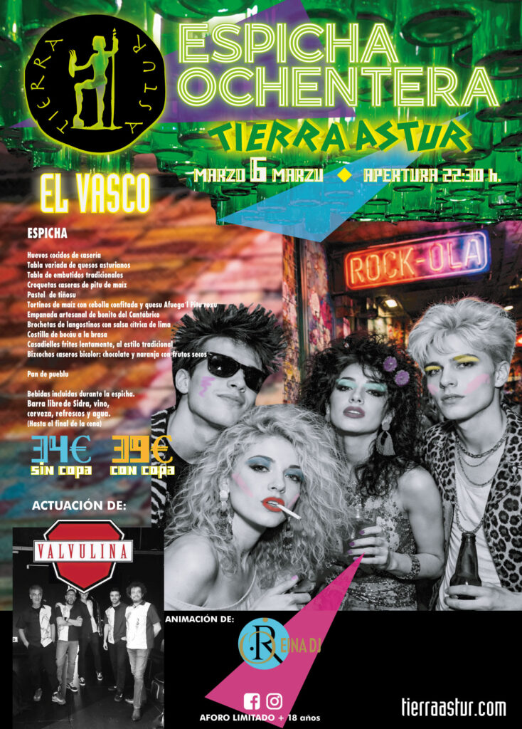 Vive de nuevo las noches de los 80 en nuestra espicha especial ochentera. 📅 6 de Marzo 🕔 22:30 📍 Tierra Astur el Vasco 🎶